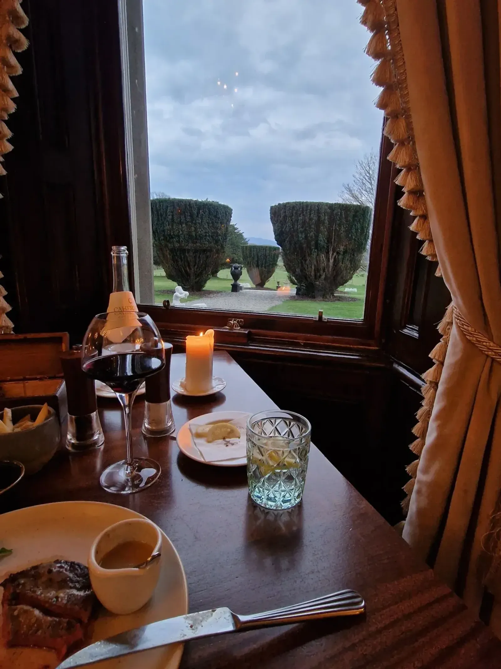 Herbert’s Restaurant serves seasonal cuisine crafted from local ingredients—ideal for a romantic dinner or a relaxed breakfast watching deer wander past the windows. For a more casual bite, the Cellar Bar offers Irish favourites in the hotel’s original 140-year-old wine cellar.